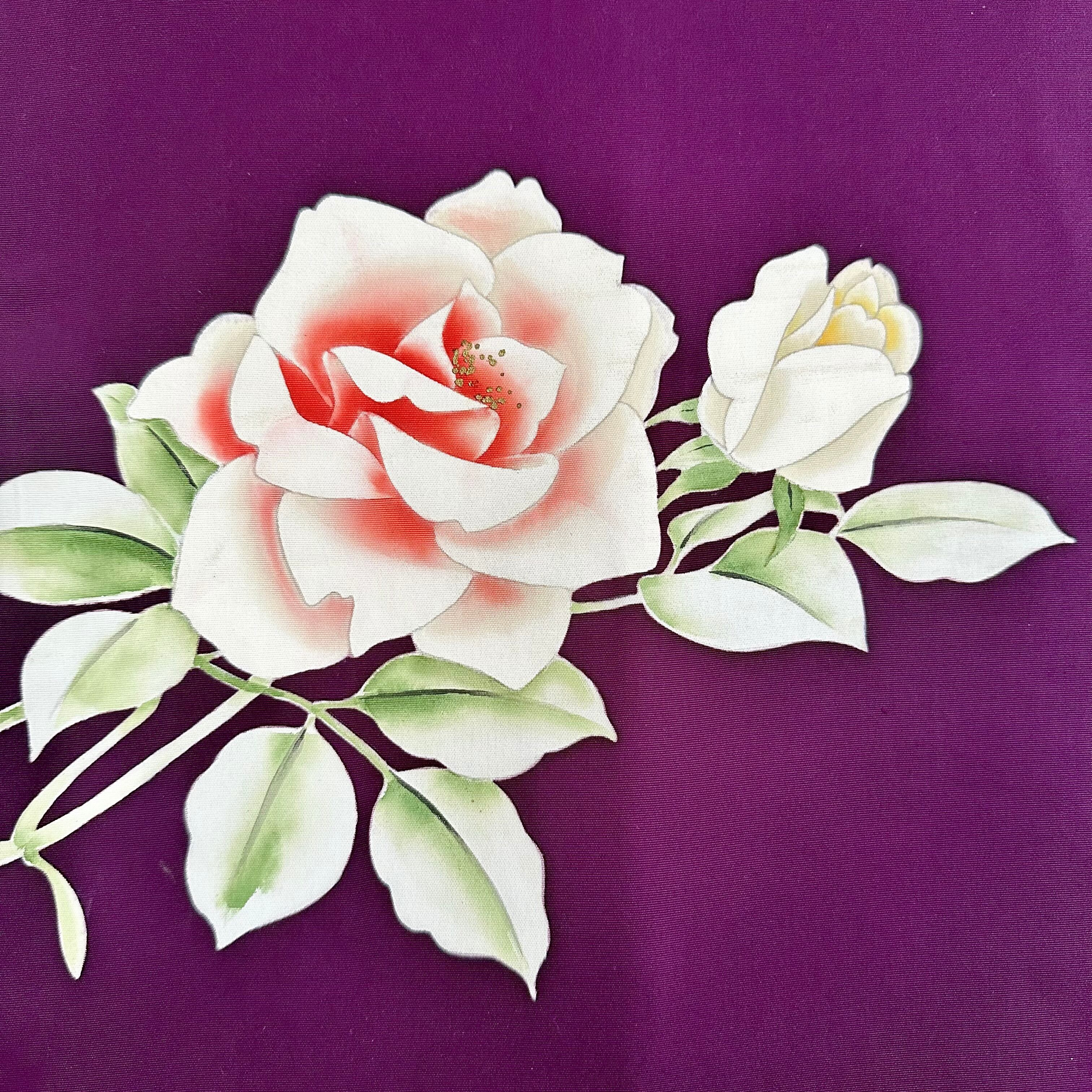 和の美しい紫に、可憐に咲き誇る薔薇。
