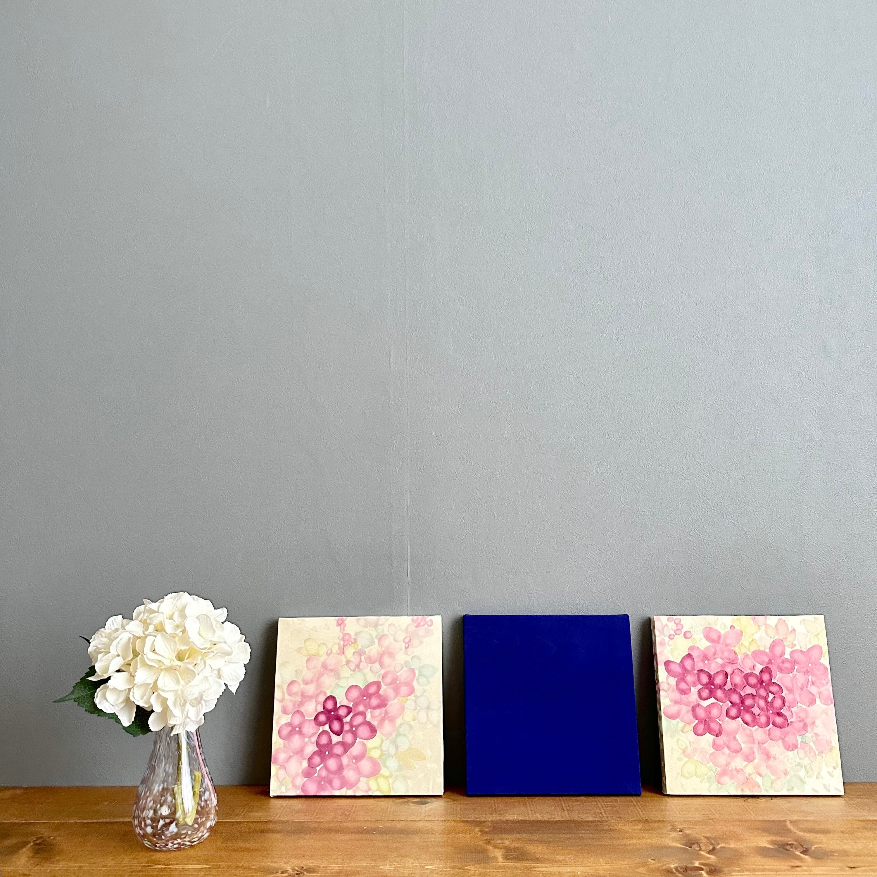 Kimono fabric panel 22×22cm 着物のファブリックパネル 淡紫の紫陽花と流水(3枚セット) Japanese Kimono Interior Japanese Style Art Panels Kimono panel Washitsu Japanese interior | koto1946