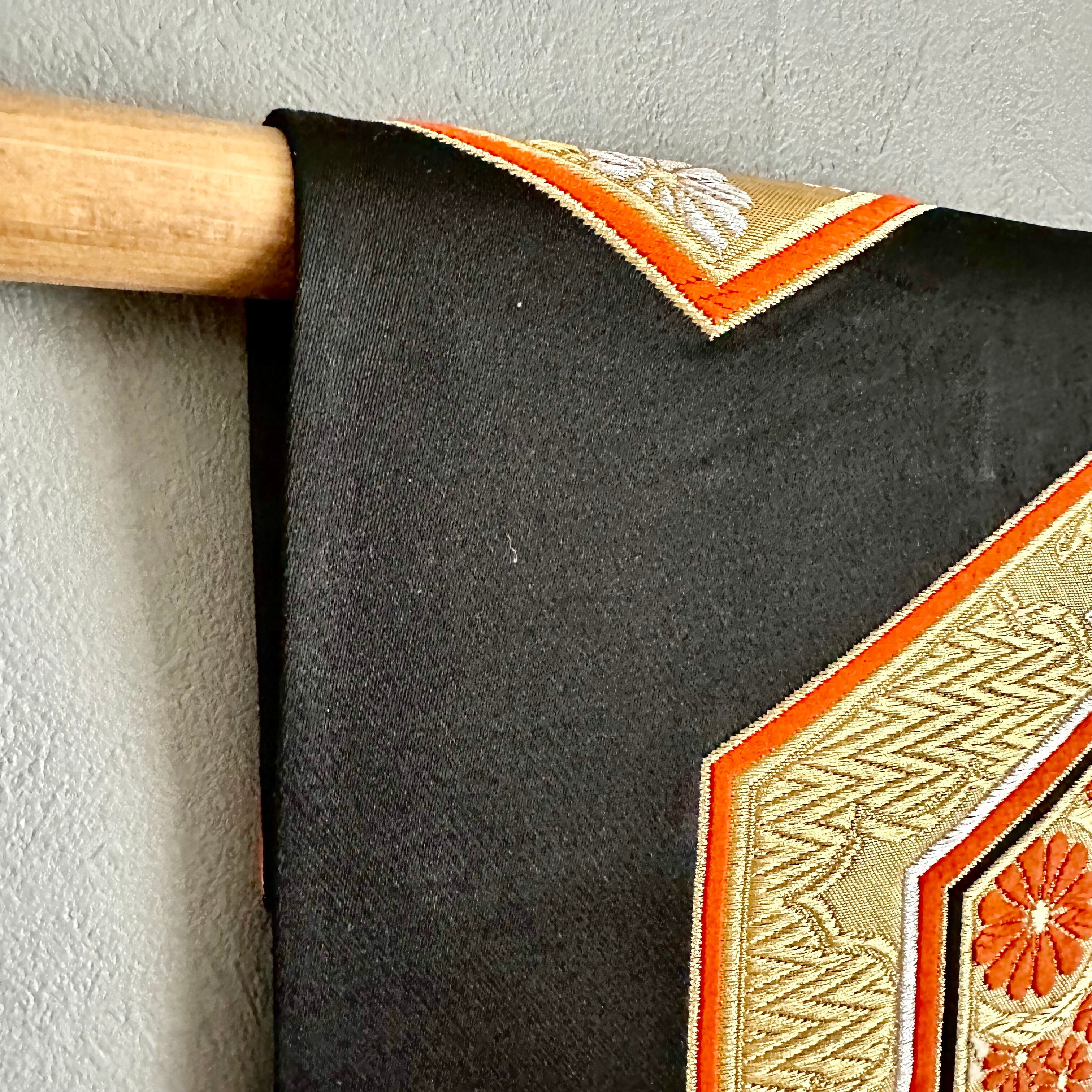 Kimono tapestry 帯のタペストリー 漆黒に金色の亀甲 Japanese Kimono Interior Art Panel Kakejiku Art Wall Art Kimono Panel | koto1946