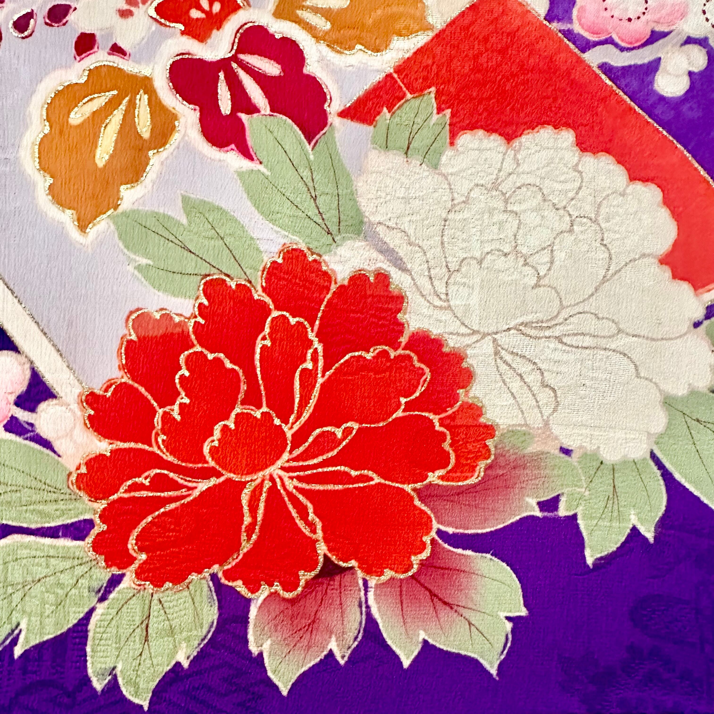 Kimono fabric panel 22×22cm 着物のファブリックパネル ハレの日 紫に牡丹(2枚セット)Japanese Kimono Interior Japanese Style Art Panels Kimono panel Washitsu Japanese interior | koto1946