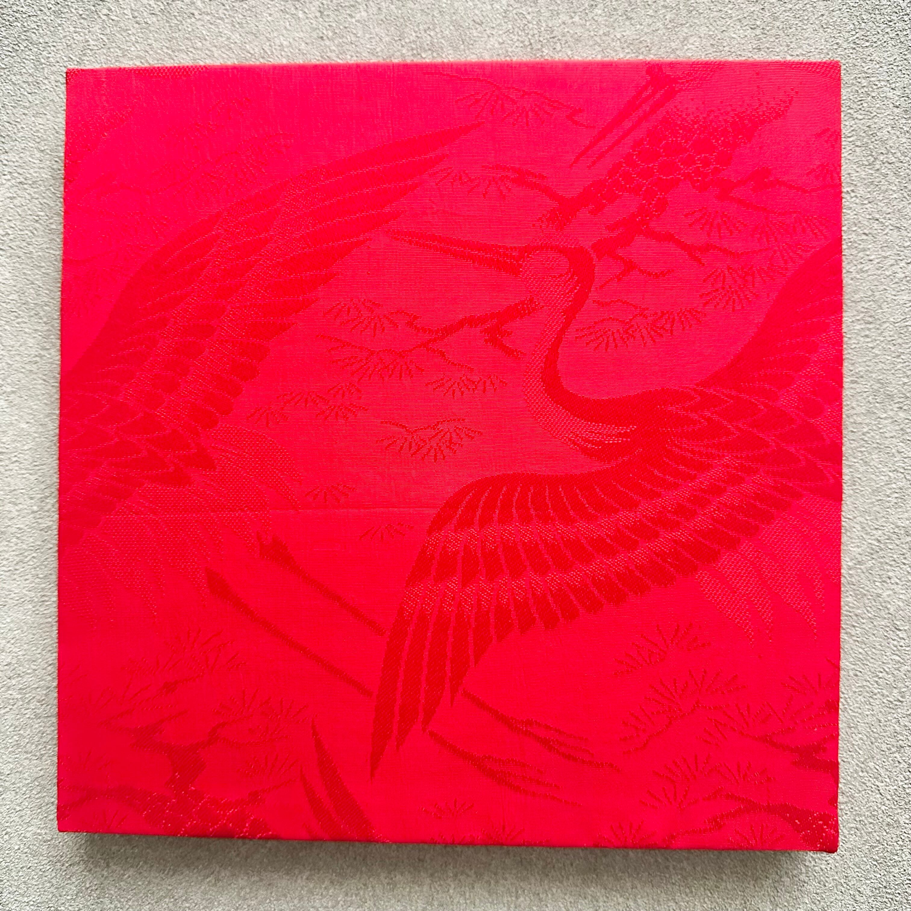 愛らしい牡丹や桐、梅の咲く晴れやかな柄行のお着物に、和の赤を合わせ、日本の美しい色合いを集めたファブリックパネルにしました。